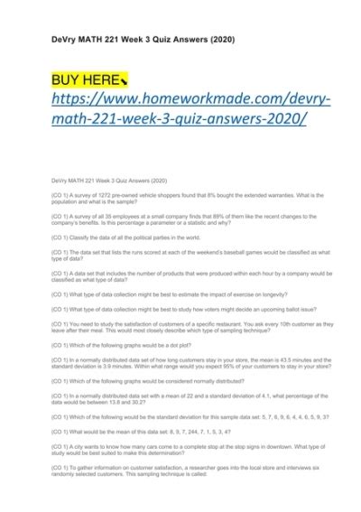 Reading Online devry math 221 week 3 quiz answers Paperback Open Library